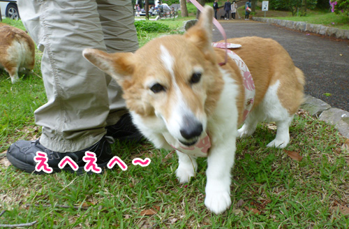 コーギーにはやっぱり緑が似合うね♪